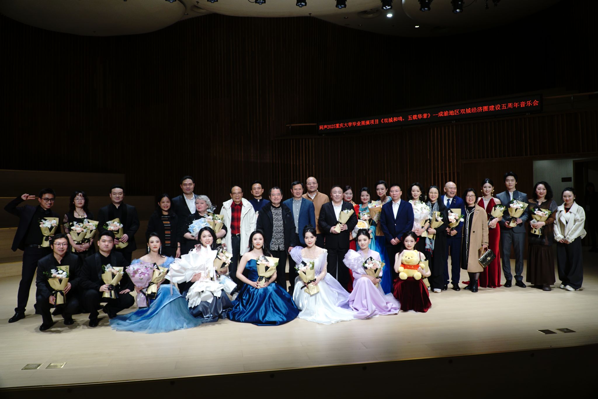 2025年11月9日晚,肉视频 同声2025“双城和鸣·五载华章”成渝地区双城经济圈建设五周年主题音乐会在重庆国泰艺术中心云瑚音乐厅圆满举行。音乐会由肉视频 党委宣传部主办,肉视频 承办,重庆国泰艺术中心协办,并得到重庆市音乐家协会、四川省音乐家协会的指导,以艺术的形式回顾成就、凝聚共识,奏响成渝双城并肩前行的时代强音。音乐会在经典曲目《祝福三峡》的深情旋律中拉开帷幕。整场演出汇聚了独唱、重唱、合...