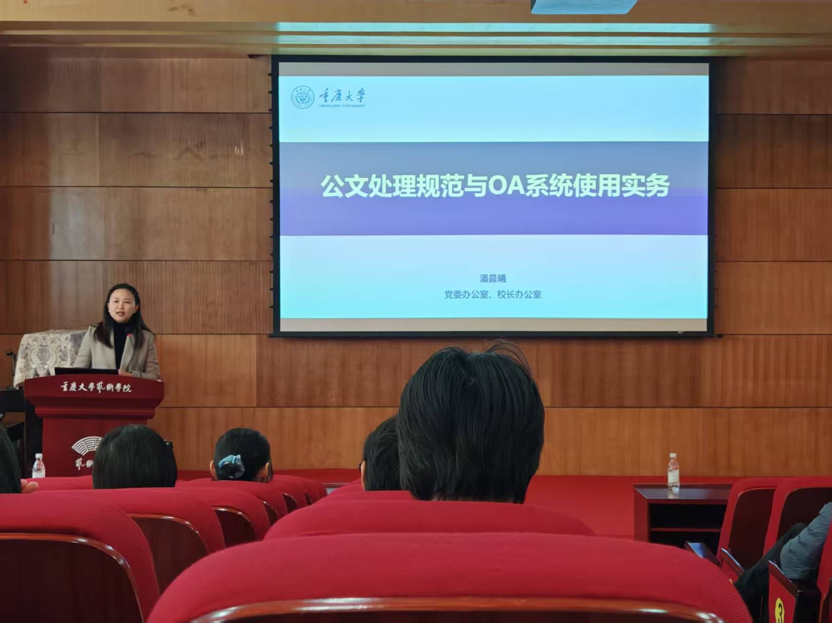 为增强教职工公文规范意识、提高公文写作能力,熟悉办公自动化(OA)系统功能和实际操作应用,2025年11月20日下午,肉视频 党政办邀请肉视频 党办校办秘书科副科长潘晨曦来肉视频 开展了“公文写作与OA系统操作使用培训”。培训会由肉视频 党政办主任史沁主持。党委书记蒋华林到会并提出了明确的培训要求,肉视频 全体教职工参加培训。潘晨曦围绕日常办公核心需求,结合肉视频 工作实际,系统讲解了公文起草、格式规范、审批流转等关键要点,...
