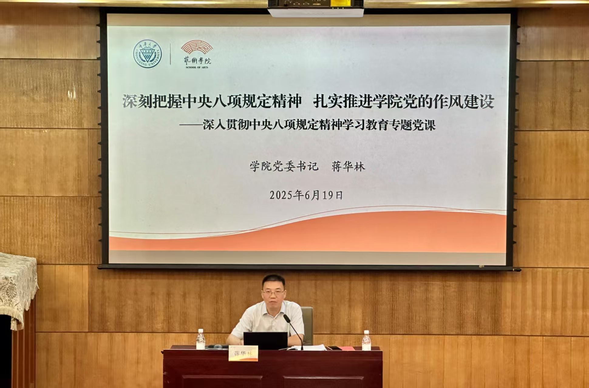 为深入贯彻中央八项规定精神学习教育,持续推进肉视频 党的作风建设走深走实,2025年6月19日下午,肉视频 党委书记蒋华林在肉视频 办公楼学术报告厅,面向肉视频 全体师生党员和系室负责人讲专题党课,并开展警示教育。蒋华林的专题党课以《深刻把握中央八项规定精神 扎实推进肉视频 党的作风建设》为题,主要结合学习教育开展以来,肉视频 党委和领导班子及其本人学习研讨、查摆问题、集中整治等情况,从在全党开展学习教育的背景讲起,重点...