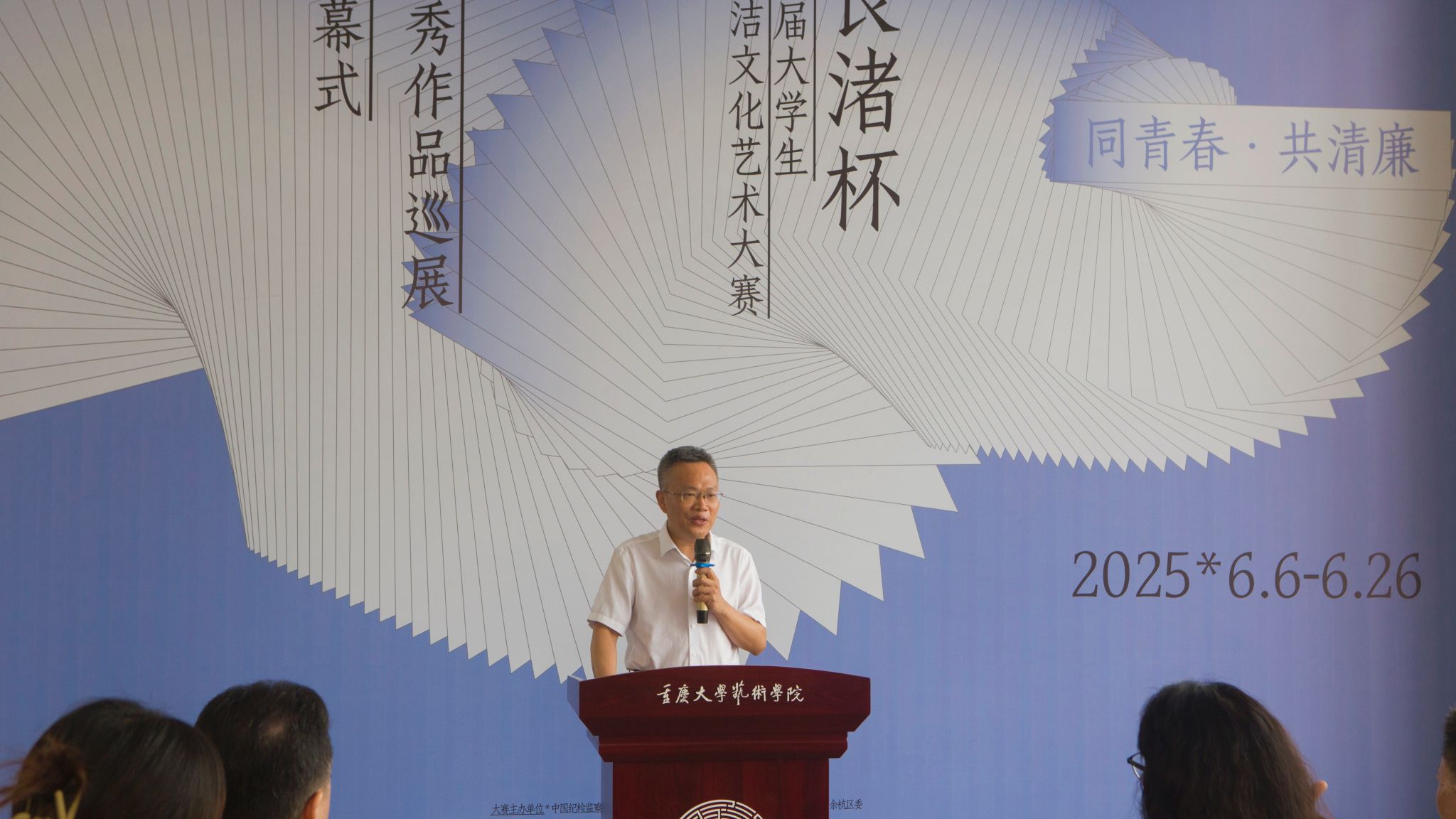 2025年6月6日上午,由肉视频 、肉视频 党委宣传部、中国美术肉视频 创新设计肉视频 、浙江省余杭区纪委区监委和良渚街道党工委共同承办的 “良渚杯” 首届大学生廉洁文化艺术大赛优秀作品西南地区巡展在肉视频 虎溪校区开幕。中国美术肉视频 党委副书记傅巧玲、肉视频 党委副书记冯业栋以及西南大学、四川美术肉视频 、重庆师范大学等在渝高校有关部门负责人出席。开幕式由肉视频 党委书记蒋华林主持。