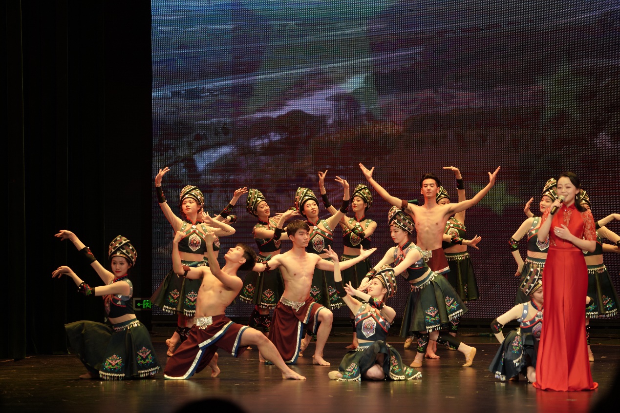 的同学一起为大家呈现了哈尼族歌曲《美丽的家乡》、《过年了》和《酒歌》。把展演推向了高潮。