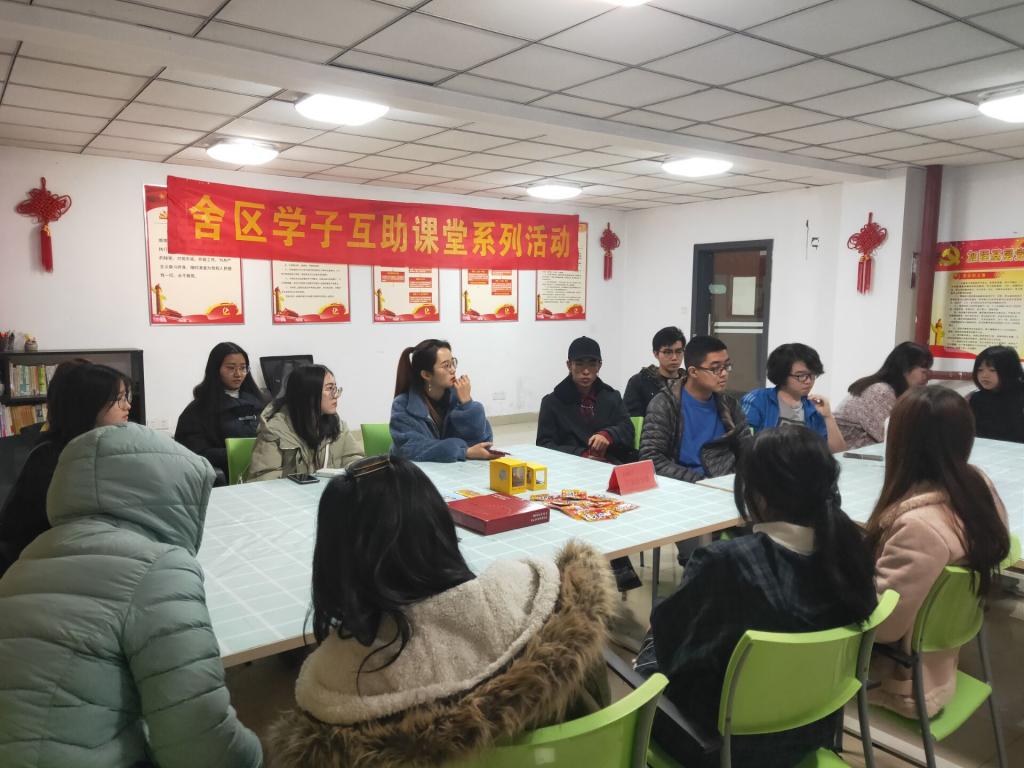 寝室文化节评比活动中获得“文明寝室”的荣誉称号。陈子龙同学分享了他们宿舍形成的相互鼓励、相互监督的学习氛围,寝室同学的成绩在年级中名列前茅,自己更是一次性通过全国英语四级和六级考试。与会同学相继分享了自己寝室的文化故事,并就此做了交流谈论。座谈会上大家还就宿舍公共空间、楼层活动室的合理利用与管理,以及楼层垃圾分类处理的实施意见展开了讨论。