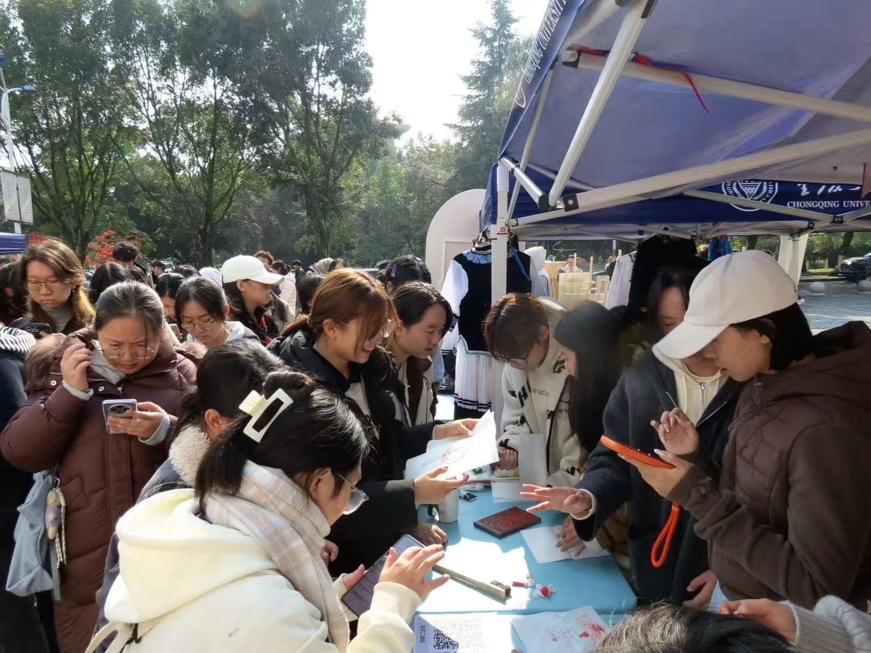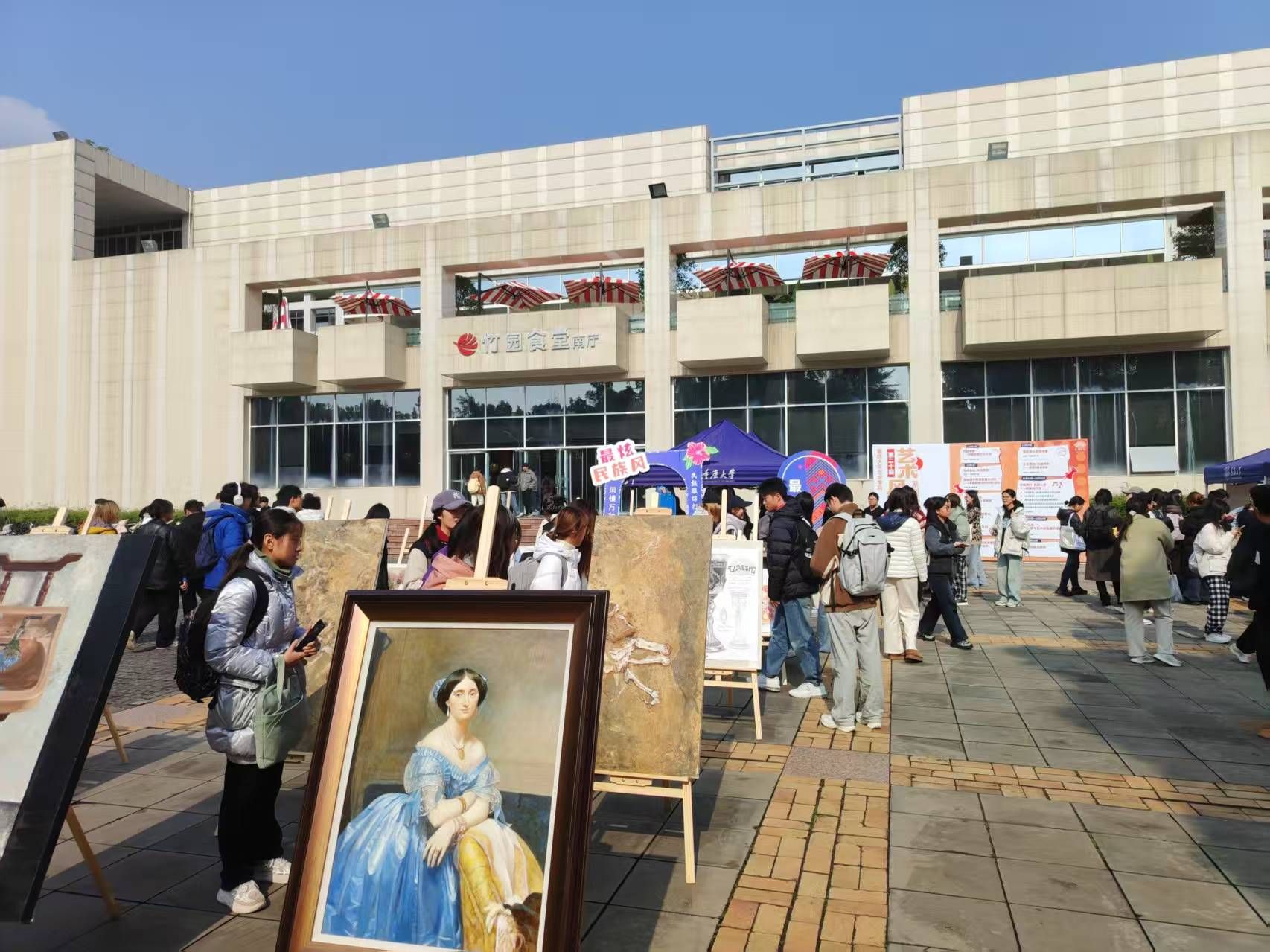 本届“艺术风行”系列活动的重头戏——“美育体验周”将于11月24日至28日在虎溪校园进行,期间推出六场沉浸式活动:音乐舞蹈快闪及现场教学、非遗手作体验、陶艺创作工坊、美学讲座、艺术作品展览等。一食堂南广场两侧快闪舞台每日中午轮番上演“即兴点位”演出;展区集中展示40幅肉视频