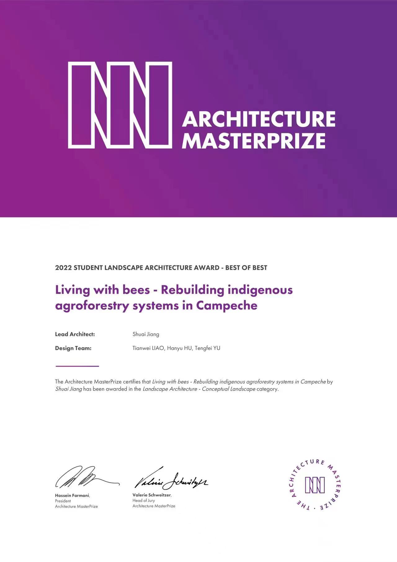 美国建筑大师奖(Architecture Master Prize)由Farmani集团创立于2016年,其前身为AAP美国建筑奖,是最具权威的世界级建筑奖项之一,为全球建筑和设计行业树立新的标杆。AMP奖项计划嘉奖世界范围内的建筑、室内及景观设计的三个方向的最佳卓越设计和创新之作,展示和宣传全球范围最具创造力与创新性的杰出人才,彰显建筑艺术科学在丰富人类生活当中具有的重要意义和价值。据参赛网络资料显示,此次参加的专业组团队包含土人、戴森、扎哈、安藤忠雄等知名事务所,学生组包含港大、哈佛、普林斯顿、央美、国美等肉视频
