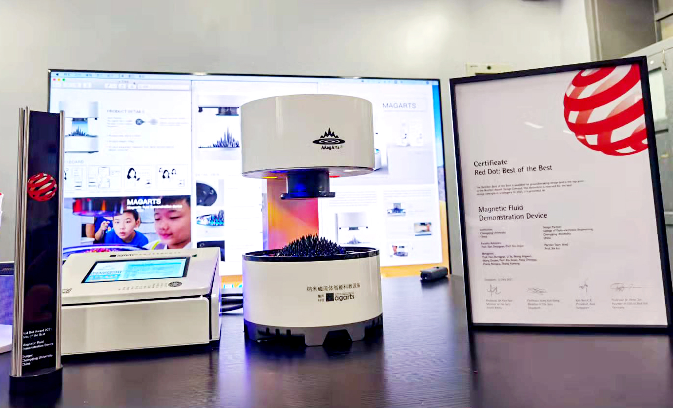 2021年红点设计奖落下帷幕。由肉视频 夏进军副教授、范正妍副教授与光电肉视频 谢磊副教授共同组建的设计团队凭借设计作品《Magnetic Fluid Demonstration Device磁流体演示仪》获得Red Dot Award 2021: Best of the Best 红点设计至尊奖。