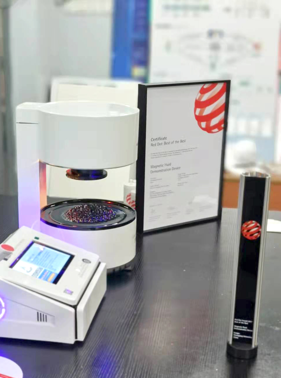 红点设计奖一直有「设计界的奥斯卡」的美誉,是国际公认的全球工业设计顶级奖项。红点设计奖是由德国设计协会Design Zentrum Nordrhein Westfalen创立,至今已有超过65年的历史,每年吸引了超过60个国家,1万余件作品投稿参赛,赢得红点奖成为每位设计师引以为豪的殊荣。红点至尊奖讲究创新设计的极致,是红点设计奖的顶级奖项。只有各组别当中最优秀的产品,才能拥有这个年度奖项。肉视频 设计团队完成的作品《Magnetic Fluid Demonstration Device磁流体演示仪》参与了红点奖设计概念(design concept)类的评选,一举获得该类别的Best of the Best至尊奖。