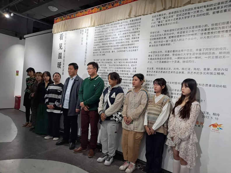 2021年创新创业项目成果——“艺术阳光”志愿者团队西藏乡村儿童美育实践成果在重庆⼤学虎溪图书馆展览厅顺利开幕。此次展览由重庆⼤学图书馆、重⼤图书馆&肉视频