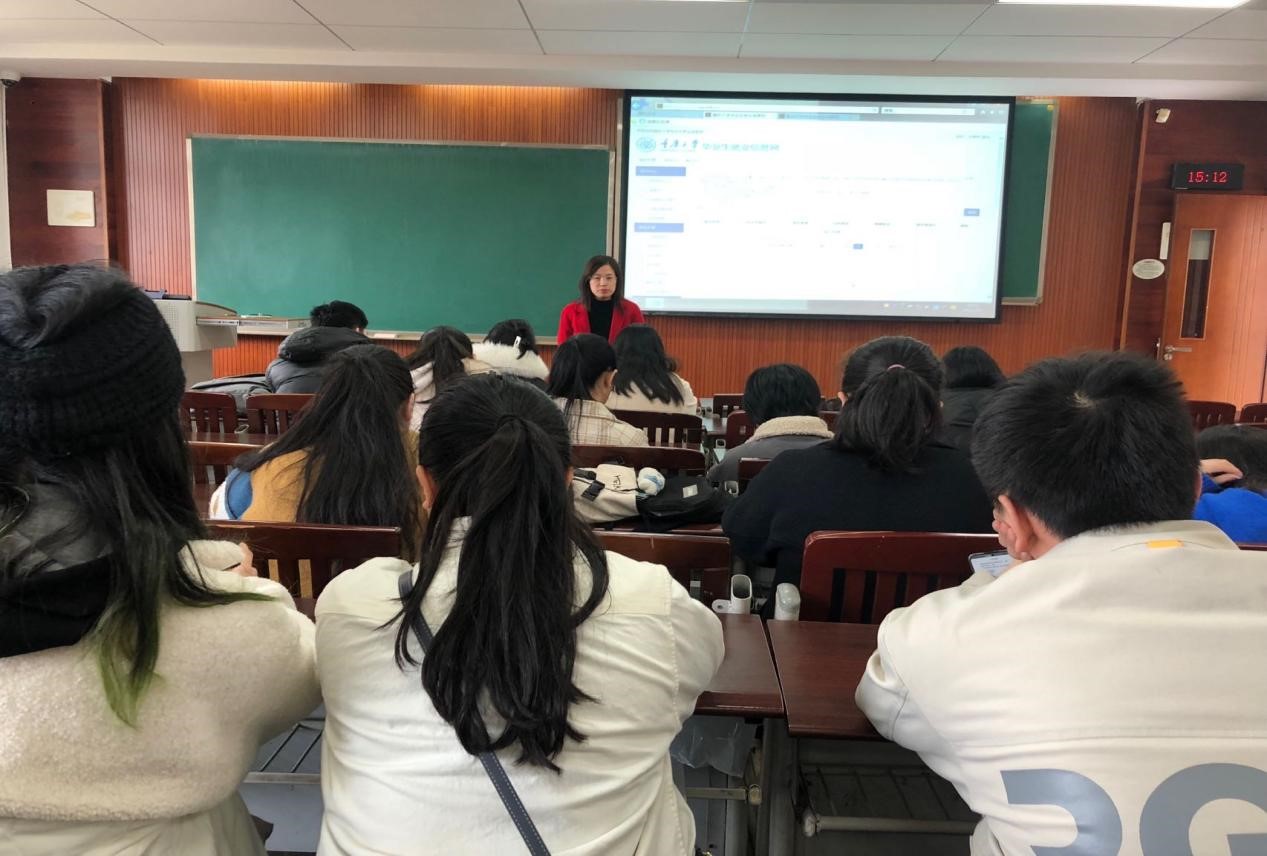 之后,陈龙就本届毕业生就业整体状况做了说明,分享了已就业学生求职应聘经验,希望未就业学生积极行动起来,并对就业系统的操作与使用以及签约模式再次做了讲解。他针对求职面试、考公等对未就业学生进行了分类指导,对考研二战同学进行了鼓励与支持,并建议大家在复习考研的同时关注就业信息,遇到自己满意的单位也可以考虑先工作再考研。另外,他还就学分审核、毕业设计、档案投递、户口转迁、报到证、离校手续等相关事宜的重要性向大家作了说明。
