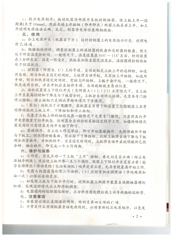 装裱机操作说明书