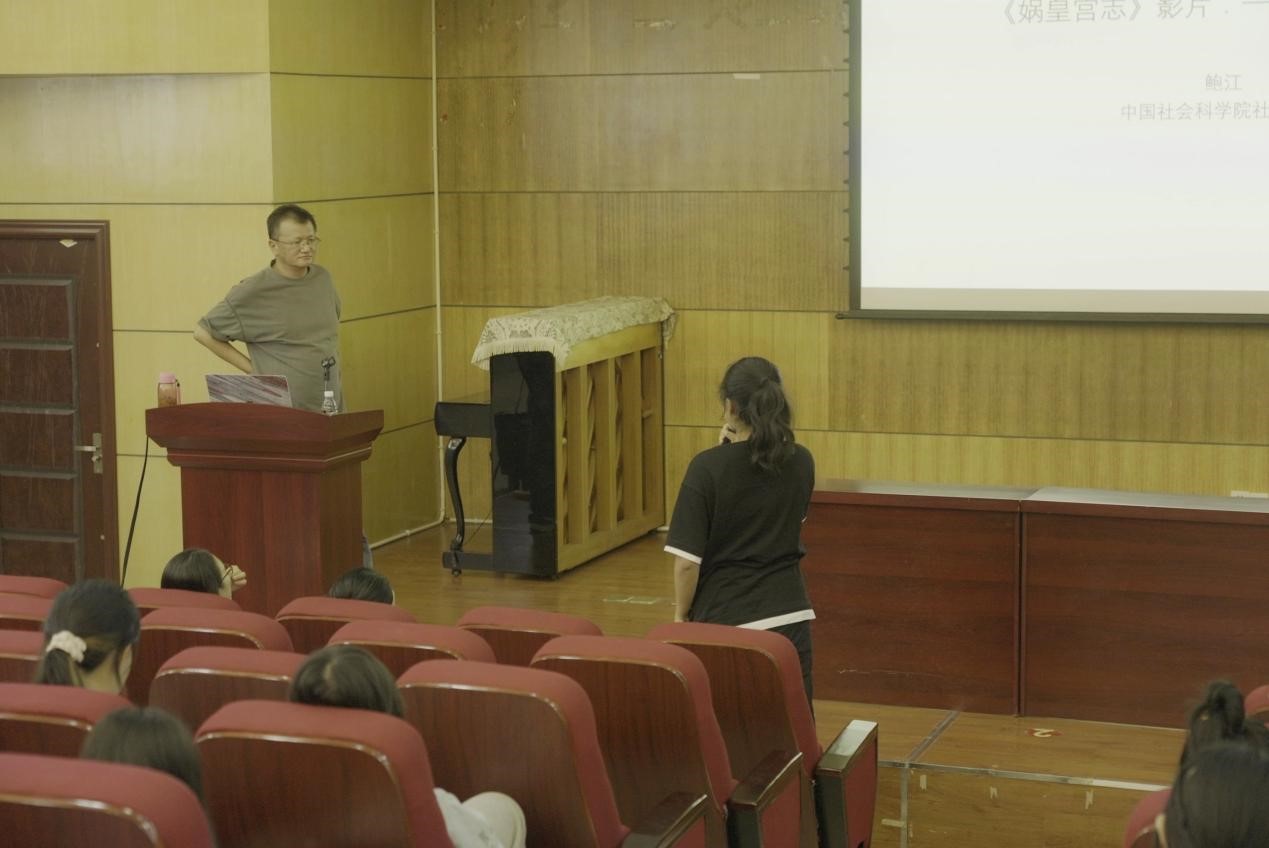 讲座互动环节同学们的提问热情十分高涨。有同学提问以怎样的顺序去阅读书籍的文字与影片光盘两部分。鲍教授回应指出,不需要严格遵循所谓的顺序标准,只是在这种二阶电影的概念下强调回到文化主体本身倾听他们的建议。也有同学提问:“最后影片为什么没有根据他们反馈的意见对影片加旁白或是配音达到精益求精的效果?”,鲍教授强调他尽量呈现不同的对象立场、观点和态度,并将其记录,后来学者还可以沿着这些方向做更多的研究。最后鲍江教授还针对艺术学科背景的同学如何平衡学术研究与创作实践进行了经验介绍,强调同学们要在前人研究基础上更应加深学术史的积累,只有这样才能最终转化为自己的学术思考并产生新的研究成果。