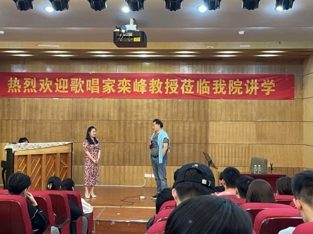 栾峰首先分享了当代声乐艺术的审美取向,发展方向,代表人物等前沿信息,并对当代声乐教学理念提出了自己独到的见解;然后分别对音乐系部分青年声乐教师和研究生、本科生进行了一对一的声乐授课,尤其是对本科生演唱意大利语歌曲中的发音、声音技术等问题进行了悉心指导。