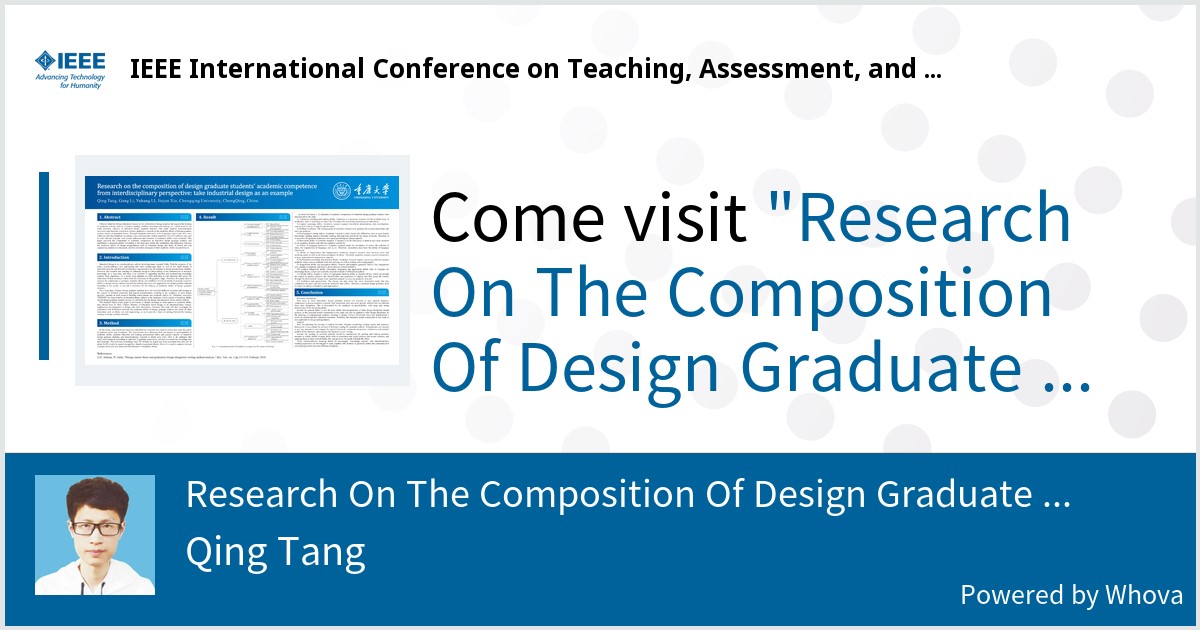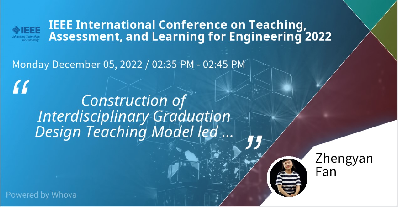 在IEEE TALE会议交流中,论文团队阐述了研究及论文的整体架构,进而细节论述了研究构建的以工业设计为引领的跨学科联合毕业设计教学模式的具体内容,介绍了团队在跨学科教育上取得的教学成果。