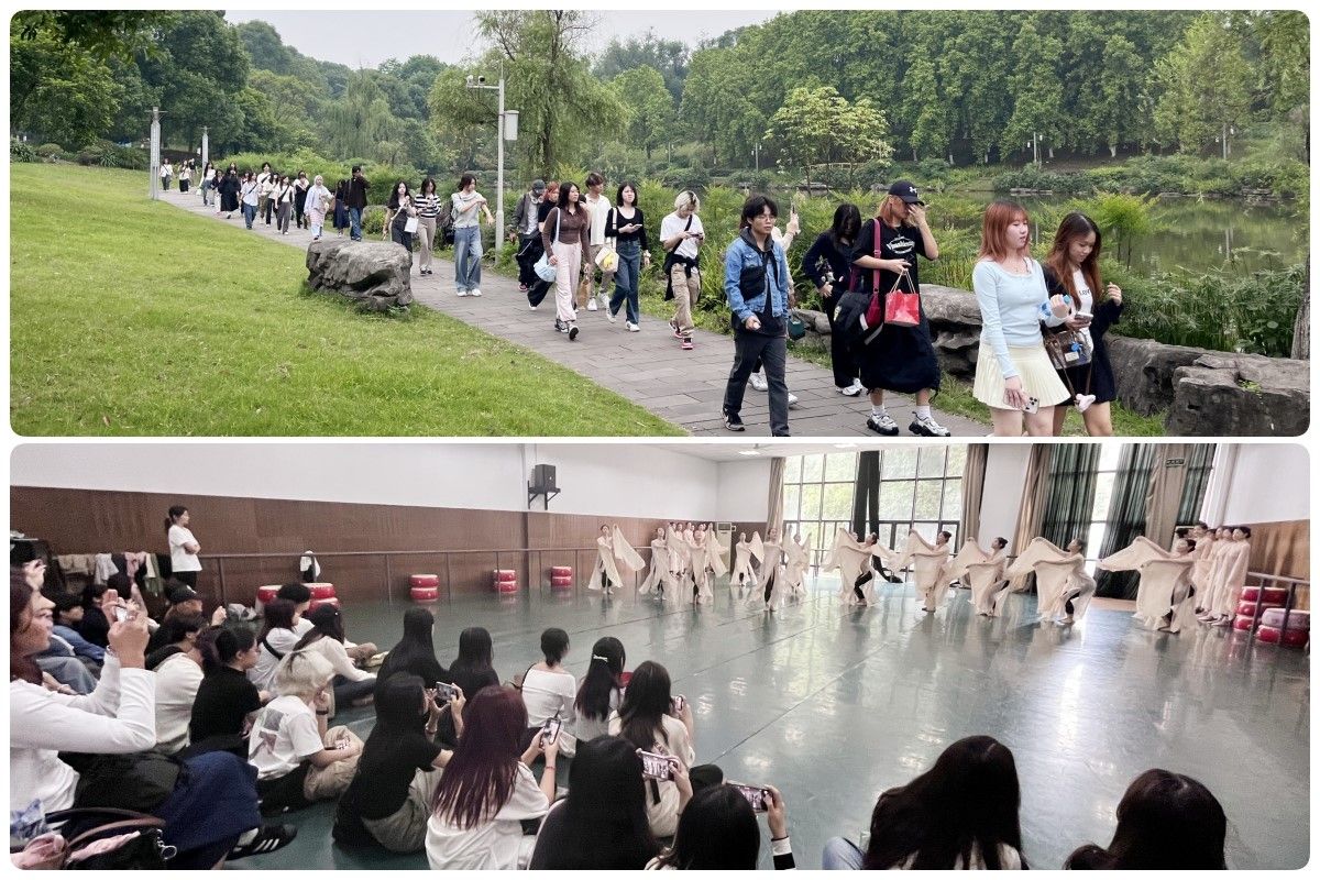 师生们参观了陶艺实验室与装裱实验室,还观摩了舞蹈系师生的排练,欣赏了充满中国传统文化韵味的舞蹈表演。