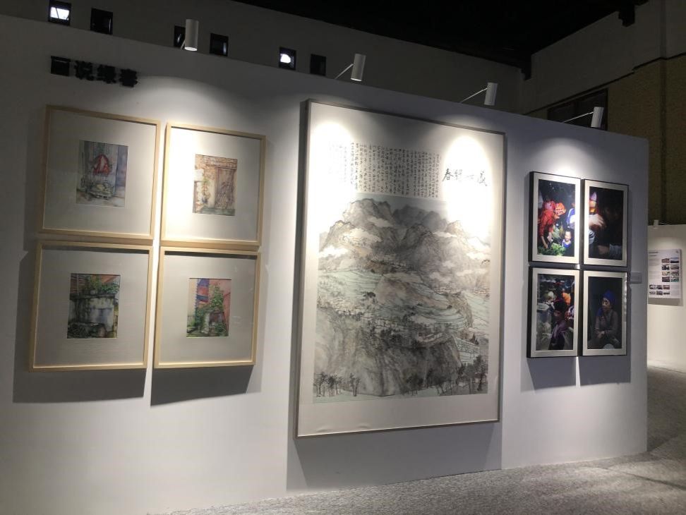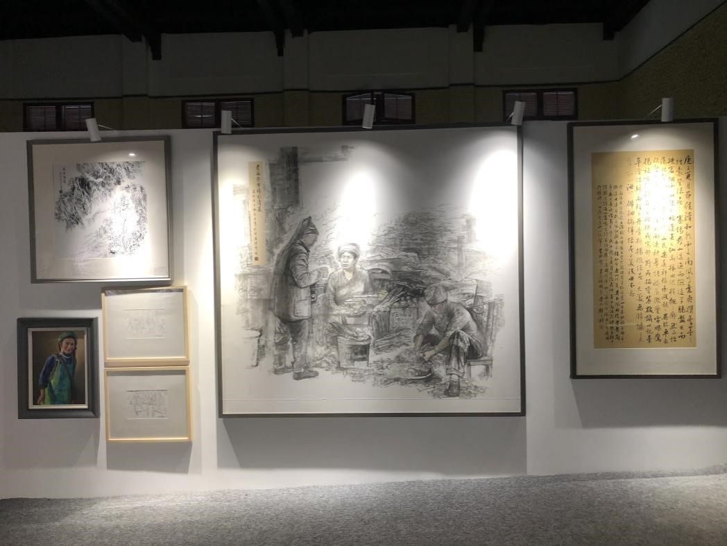 师生及社会大众见面。雒三桂以撰写古散文形式结合书法艺术,抒怀徜徉于绿春迤逦壮美风光中的愉悦之情,展示了深厚的文化艺术学养;肖力以水墨人物画形式创作出绿春集市的繁荣景象,空间营造巧妙,笔墨意趣盎然;熊喜秋的水彩作品描绘了劳动人民采茶劳作场景,内容丰富,色彩和谐;高源以山水画形式创作出绿春“天空之城”的地域风貌,场面开阔,笔墨温润;武若尘的油画《哈尼老人》,刻画出老人劳作时的动态,造型生动自然,语言表达精微;范坤的系列摄影作品,以专业视角用镜头生动地捕捉哈尼族百姓幸福安乐的美好瞬间。
