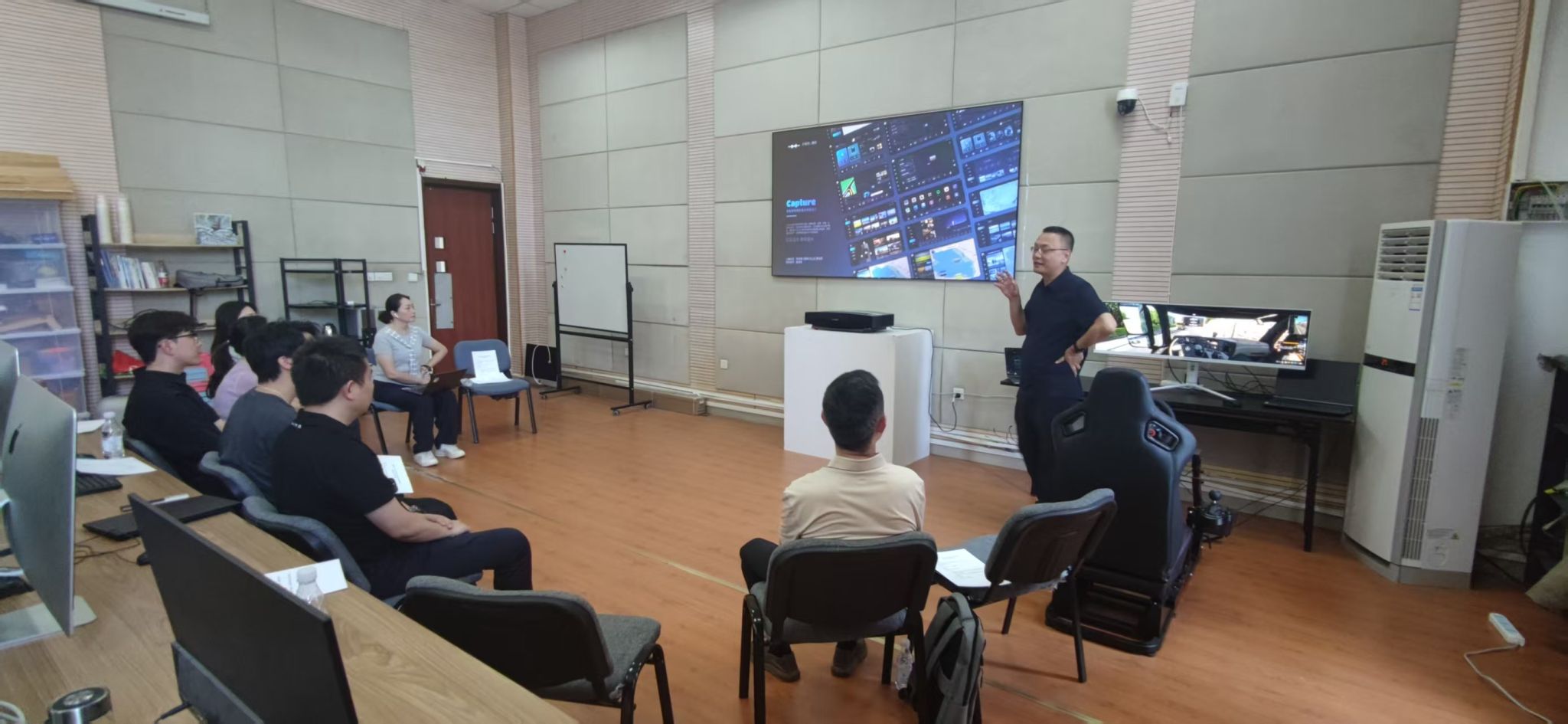 双方在艺术楼DYA204人因实验室举行了专题座谈会。首先,夏进军对赛力斯HMI专家团队表示热烈欢迎,并系统介绍了肉视频 的发展历程、人才培养特色体系,重点展示了与汽车设计密切相关的科研成果,特别是在智能交互设计、用户体验测评等方面的研究进展。