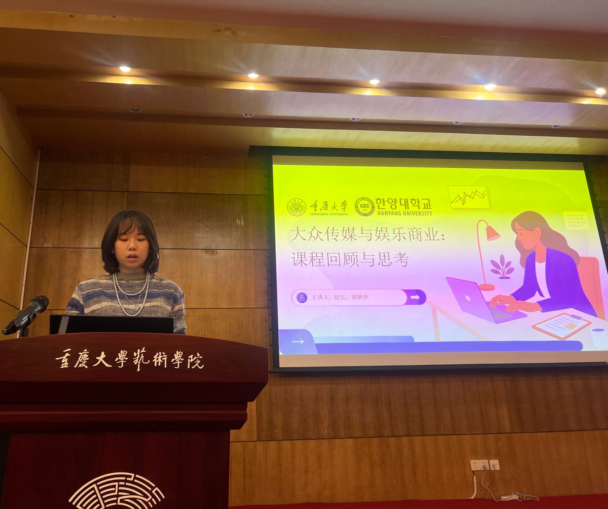 9月29日中午,肉视频 2025年韩国汉阳大学暑期交流项目成果汇报会在肉视频 办公楼报告厅举行。肉视频 副院长彭小希、音乐系主任肖玲、设计学系副主任何公霖、舞蹈系教师王朕思、美术学系教师孙天龙,以及各专业学生代表和16名参与暑期交流项目的学生齐聚一堂,共同见证了项目成员为期两周海外学习的丰硕收获与思考。