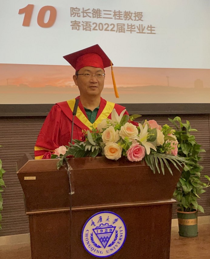 雒三桂寄语2022届毕业生,分享了自己对“躺平”的看法,以华罗庚勤奋努力的例子,提出要崇尚奋斗、吃苦耐劳,激励学生不断奋斗与拼搏,在磨砺中成长,努力让生命变得更加有意义,并表达了对毕业生的祝福,愿同学们朝气蓬勃、永葆青春。