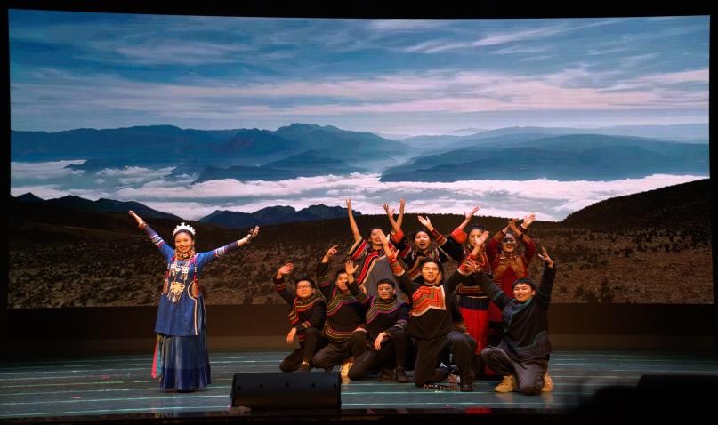 晚上七点,音乐会在热闹欢快的云南花腰彝族民歌《天上雾腾腾》中拉开序幕;接着是安静抒情的小合唱《飞鸟和鱼》;