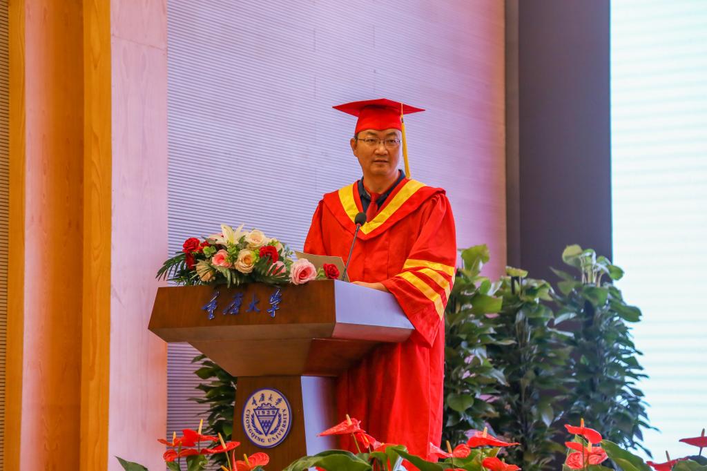 紧接着,毕业生代表、升学东南大学继续攻读博士学位的任绍阳同学进行了发言,表达了对母校的感恩与对学弟学妹的祝福。教师代表范正妍副教授发表了讲话,表达了对同学们顺利毕业的祝贺,希望同学们在未来能持续学习,保持自信,守正创新,铸就辉煌。接着,毕业生家长代表、2017级本科生律超琪父亲律波发表了讲话。律波对毕业生们表达了热烈的祝贺,向所有对学生付出的领导老师、家人朋友表达了感谢,同时,也希望毕业生们以昂扬的斗志,饱满的热情迎接新生活,走向祖国最需要的地方,走向广阔的未来,书写人生的新篇章!
