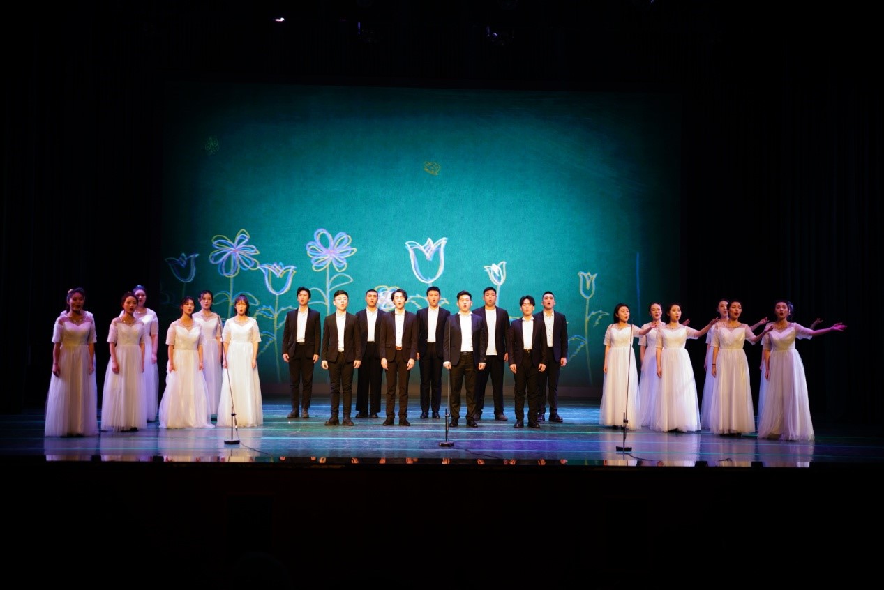 演出由全班合唱《我喜欢》拉开帷幕,这首歌是他们大一进校第一次上台演出的作品,毕业的时候再一次唱响,同学们心中有完全不同的感受。紧接着是男生们帅气的《最佳演出》,六位男同学帅气的演唱掀起了现场的火热气氛。四手联弹的两位同学是以声乐学生的身份入校,钢琴也弹得非常好,她们的表演真切、灵动,充满少女的灵动与活力。