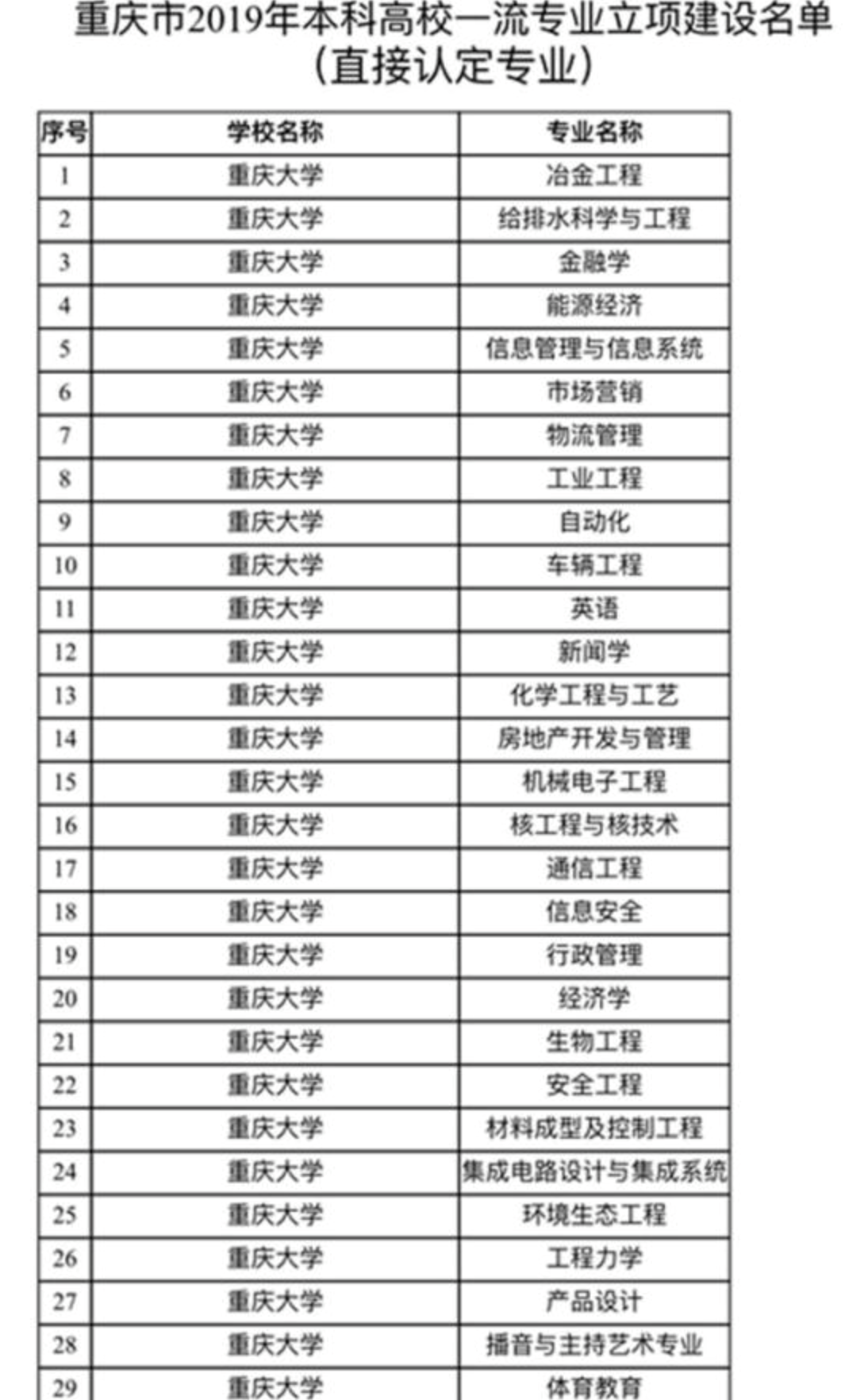 2019年6月5日,重庆市教委对重庆市2019年本科一流专业立项建设项目名单进行了公示,肉视频