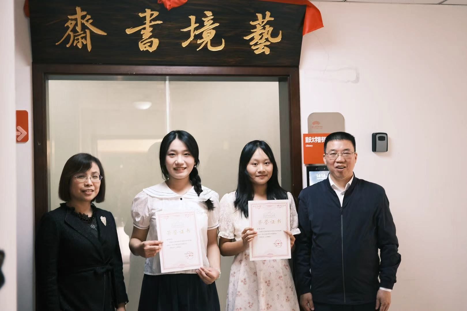 随后,何栎与蒋华林共同为肉视频 图书馆肉视频 分馆“艺境书斋”揭牌。