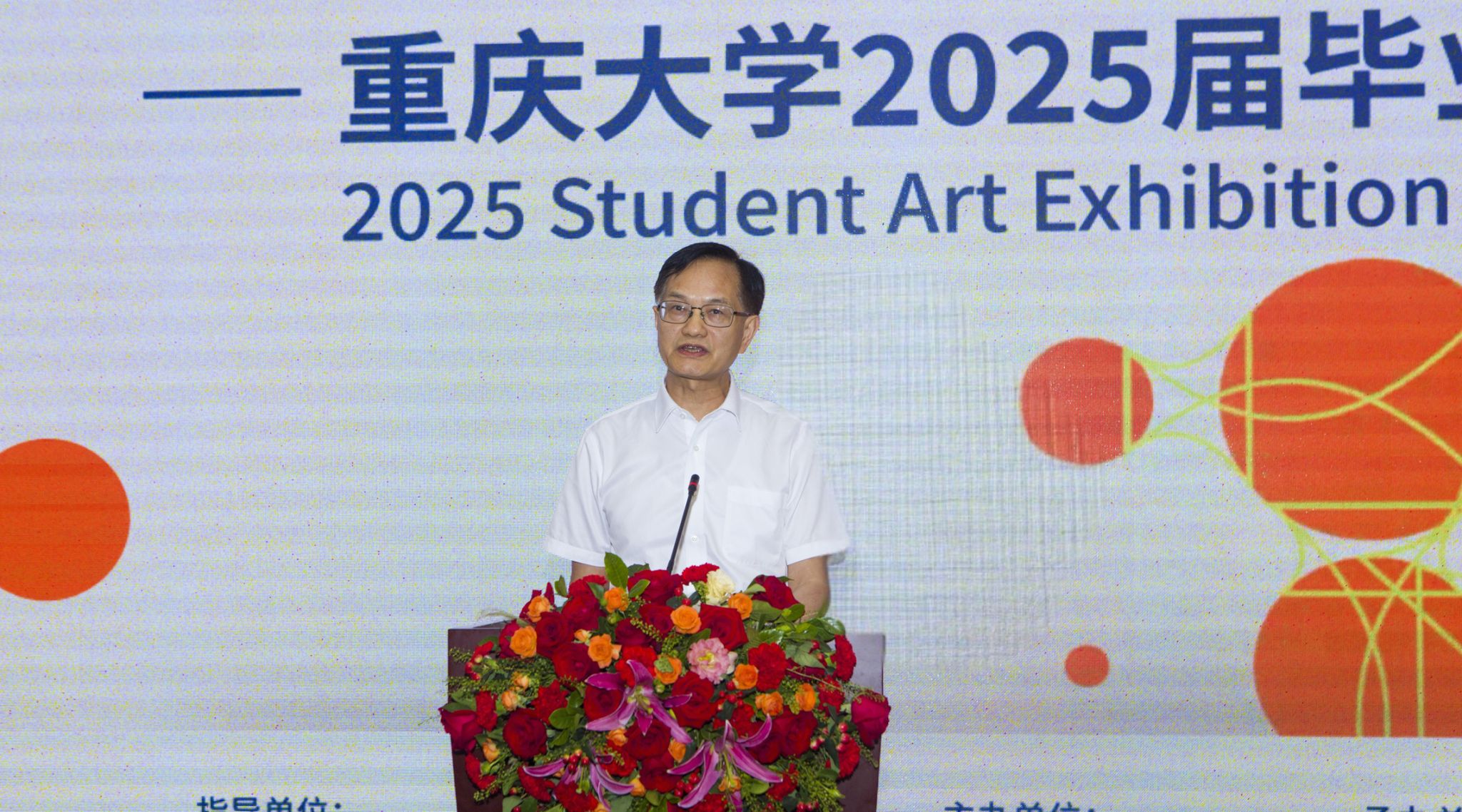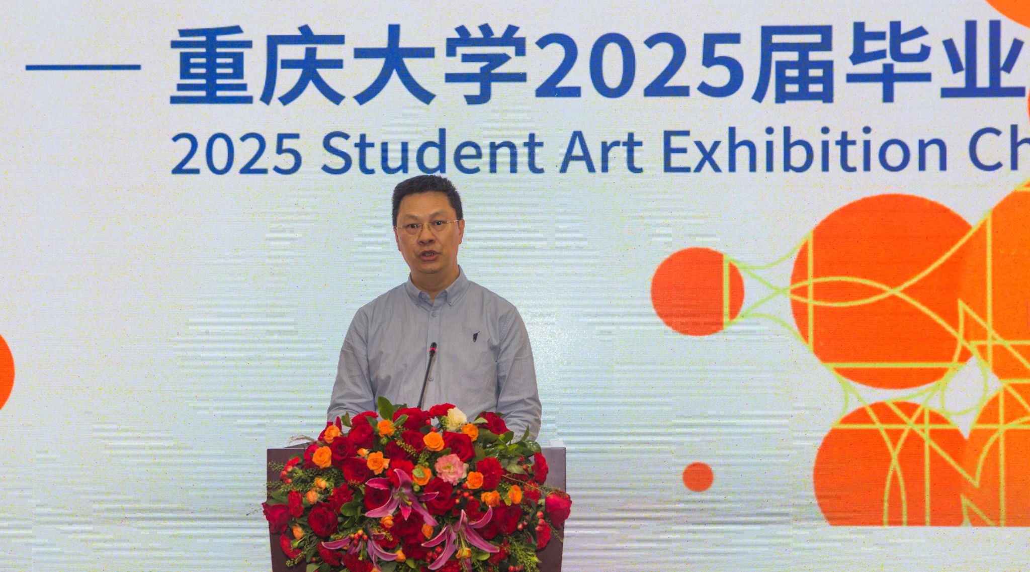 王发荣在致辞中指出,本次展览充分展现了数字智能技术与艺术创作的深度融合,体现了当代青年学子对艺术的独特理解和无限创意,是一场形式多元、内涵丰富的艺术盛宴。他表示今后将进一步加强双方合作深度、效度,推动重庆艺术人才培养创造新的高度。