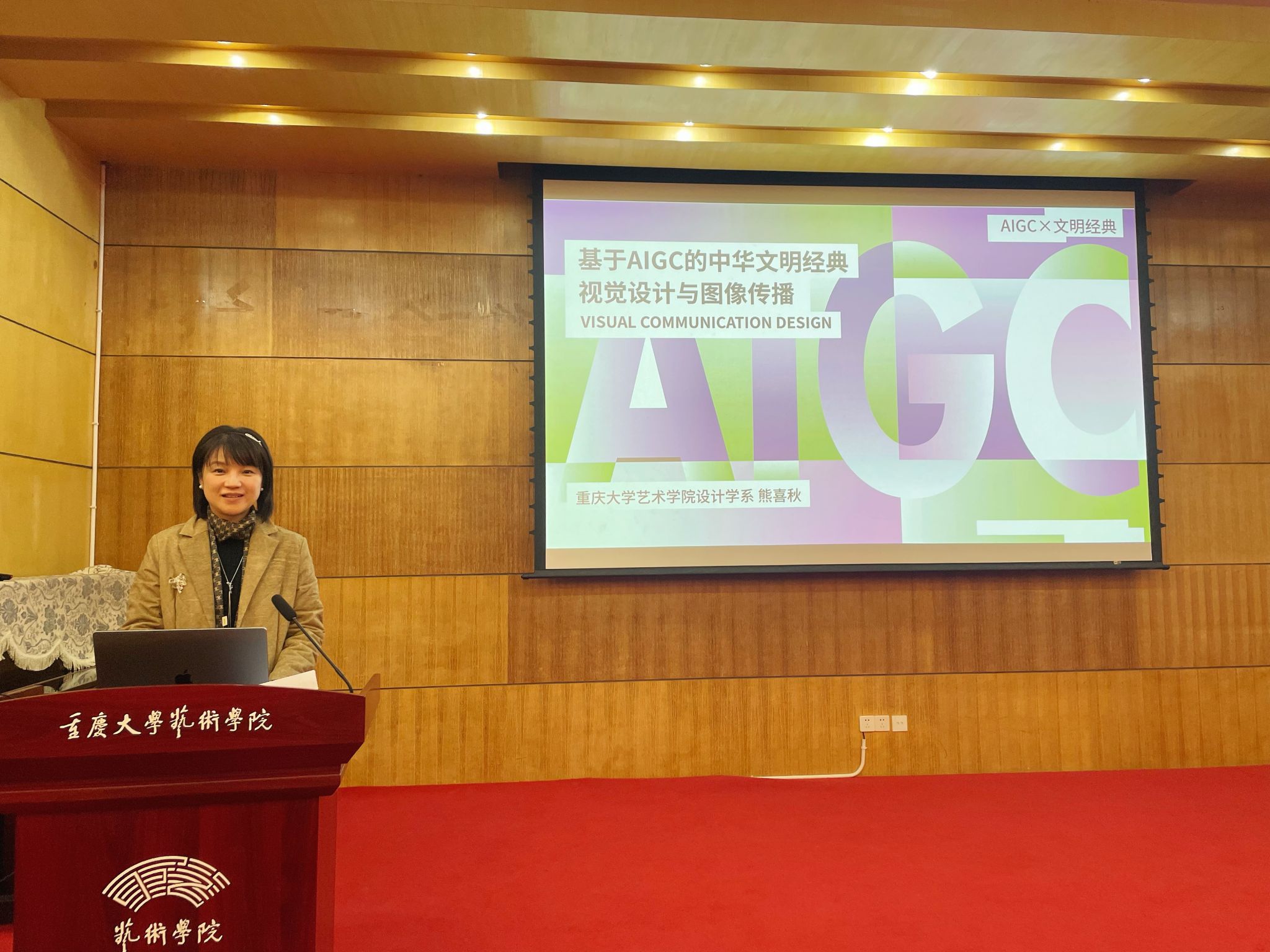 设计学系副主任熊喜秋介绍了与阿里云合作的教育部产学合作协同育人项目《基于AIGC的中华文明经典视觉设计与图像传播》的实施情况。