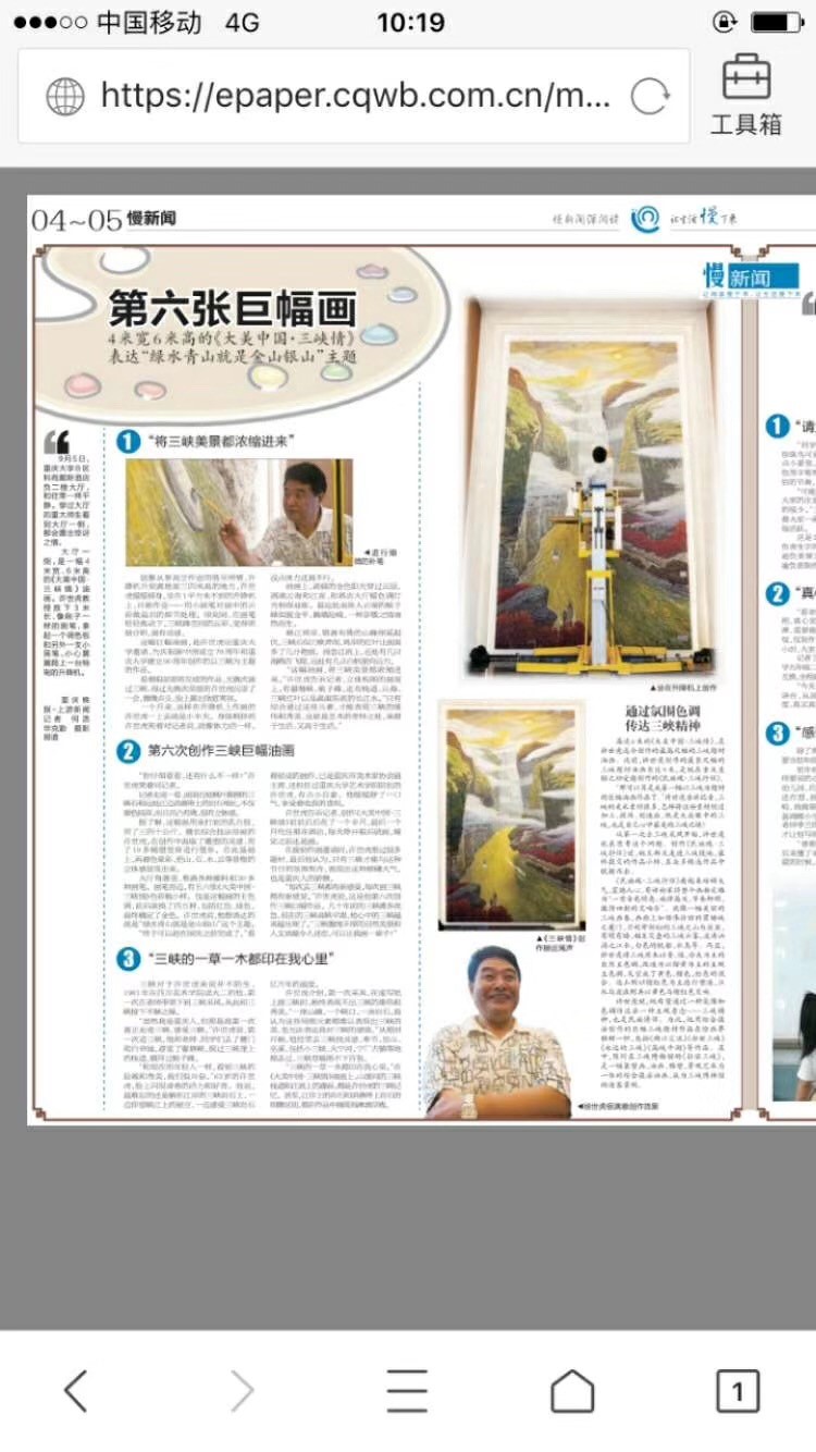 巨幅油画作品《大美中国——三峡情》的整个创作至完成的过程中也一直受到了各大媒体的高度关注与广泛赞誉,重庆日报全媒体、华龙网-新重庆客户端以及上游新闻·重庆晚报等多家知名媒体对该作品进行了深度报道。