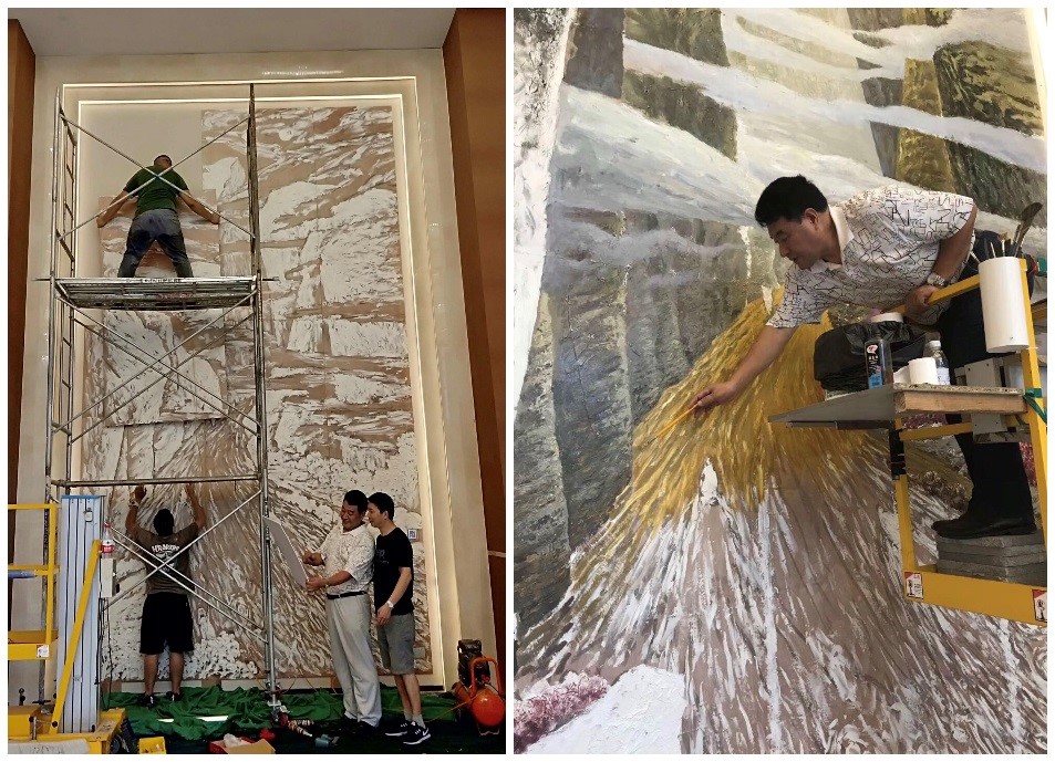 许世虎教授也带领着自己的研究生团队参与其中,让学生们通过这一次难能可贵的机会进行创作学习,并从中获得对艺术创作的启发。师生同心将祖国大好河山呈现在众人眼前。