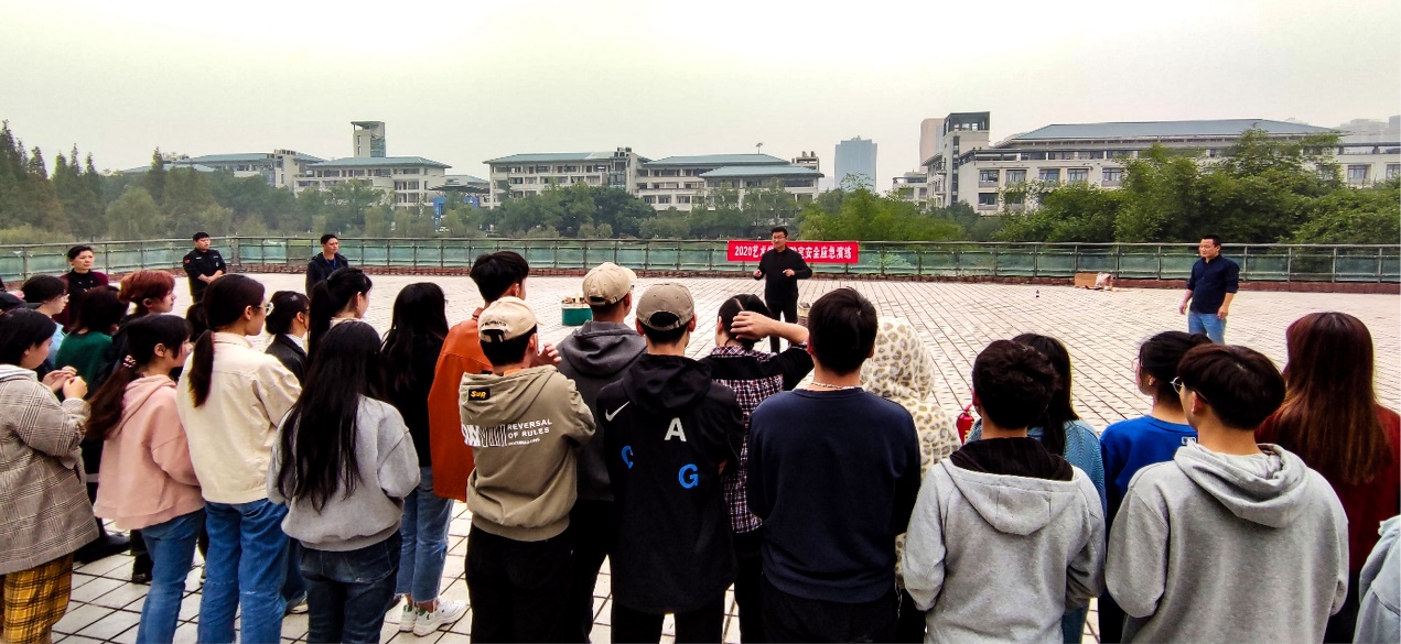 部分师生在保卫处的协助下顺利开展了消防应急演练活动。