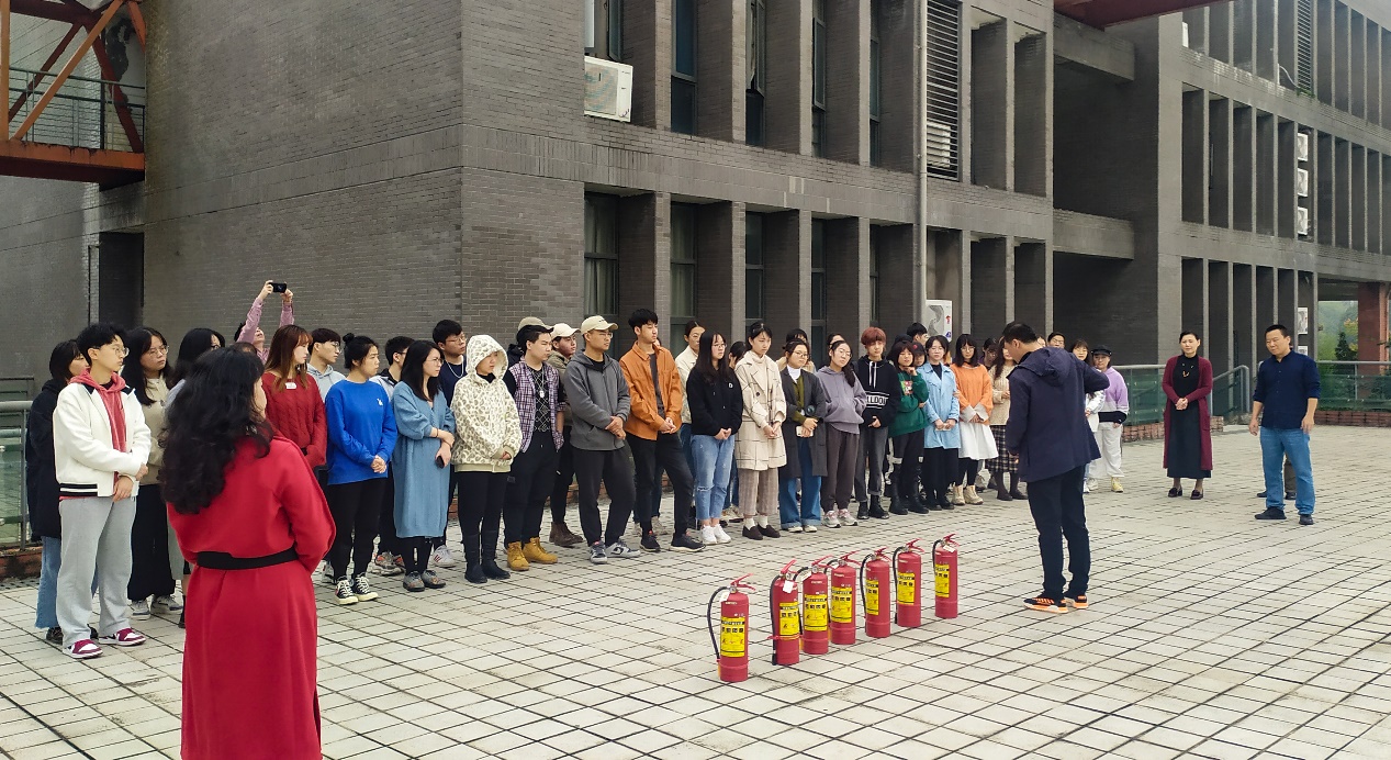 保卫处何平老师为同学们进行了消防应急演练的规范化示范如:消防器材的正确使用、消防疏散逃生技巧、逃生路线及注意事项等方面的讲解和培训等,同学们在老师的引导下有条不紊的亲身体验了消防应急演练的具体操作过程。