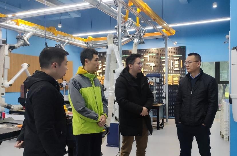 学生交叉创新中心创新管理办公室主任张翔、制造服务实验室负责人陈锦威接待并陪同参观了创新中心下设的木工工作室、3D打印室、开放制作间、设备借用中心等区域。张翔、陈锦威介绍了创新中心基本情况,并应我们要求重点介绍了房间及设备的使用授权、产品加工流程、耗材的出入库管理、费用结算和实验安全措施等。