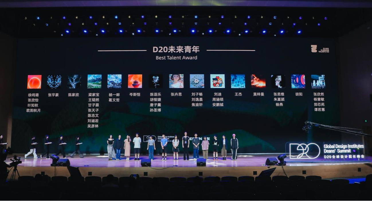 设计学系主任孙俊桥教授、夏青副教授指导的研究生张卉思作品《心玲之谷》和设计学系赵玺副教授指导的研究生莫梓曼作品《67号星的最终战争》在AI设计大赛中脱颖而出,获得D20未来青年大奖,获奖学生参与了颁奖典礼等活动。