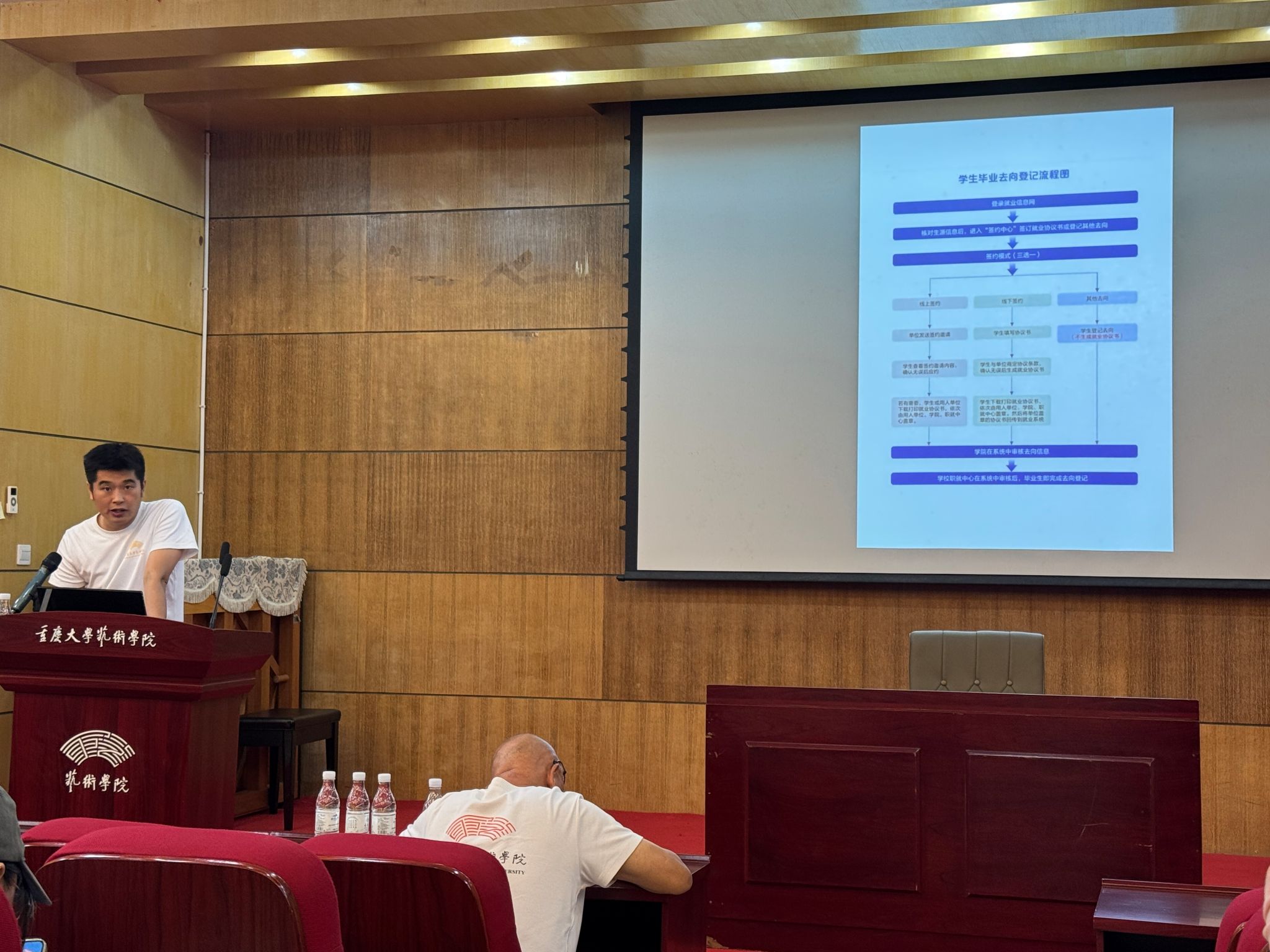 党委副书记王琦、毕业年级辅导员陈龙及学业助理、2022级本科生、2023级研究生参加会议。会议由学工办主任赵灿林主持。
