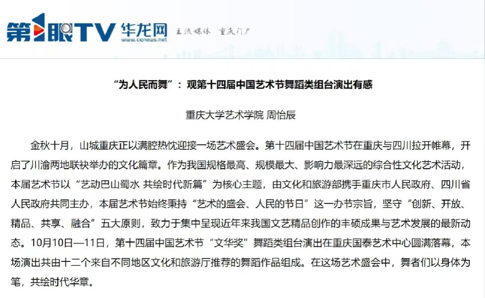 2023、2024、2025级舞蹈研究领域的硕士研究生在指导教师的带领下组成评论团,同学们沉浸于舞剧、歌剧、戏曲等多元艺术形式中,并以舞蹈专业的独特视角,聚焦作品的身体叙事、精神内核及文化内涵,由此展开深度思考与多维解读。活动期间,团队累计撰写评论文章11篇,其中6篇稿件经主办方推荐与媒体单位遴选,成功发表于重庆文艺网、第1眼TV-华龙网等重庆主流新媒体平台,其中有2篇文章登上《重庆日报》网络平台。