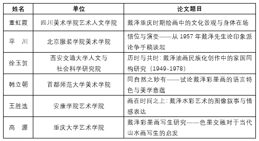 由肉视频 、中央美术肉视频 、重庆市美术家协会联合主办的“戴泽与百年中国艺术”学术研讨会定于2023年10月14日在肉视频 召开。本次研讨会采取专家约稿和社会征稿两种方式征集会议论文,并于2023年9月21日向社会公开发布了征稿通知。按照征稿通知要求,截至2023年10月9日下午5时,共收到社会来稿近20篇。经过初审和专家终审,共评选出6篇会议入选论文或长摘要选题,名单如下: