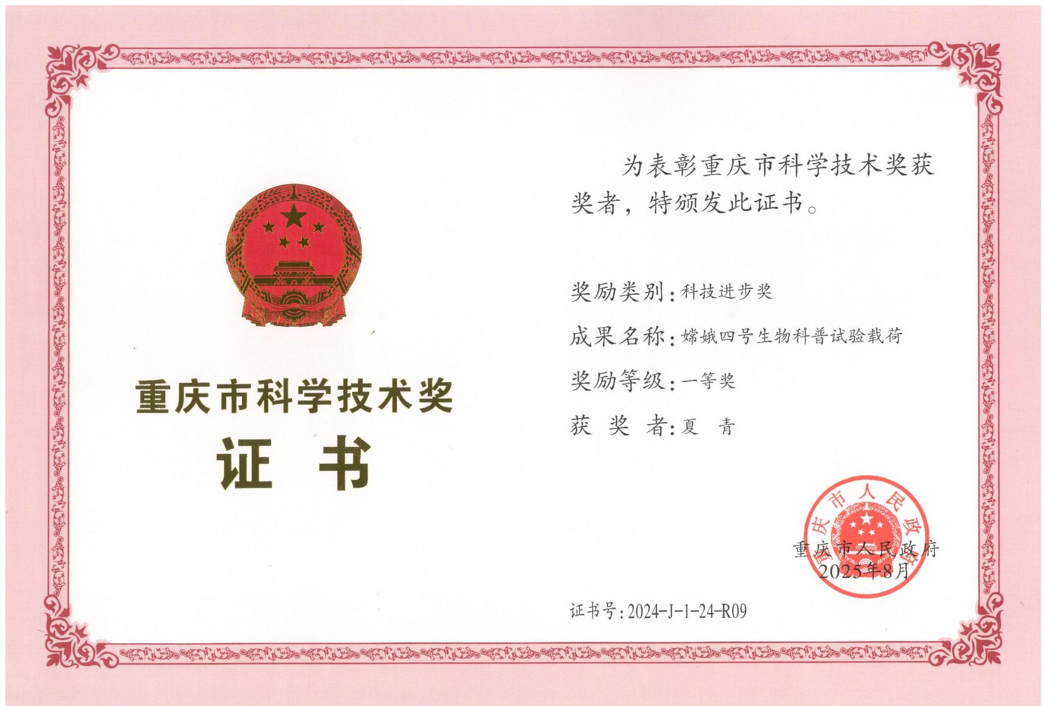 近日,2024年度重庆市科学技术奖揭晓,由教育部深空探测联合研究中心(肉视频 )牵头、肉视频 元宇宙研究中心副主任夏青团队深度参与的“嫦娥四号生物科普试验载荷”项目荣获科技进步奖一等奖。
