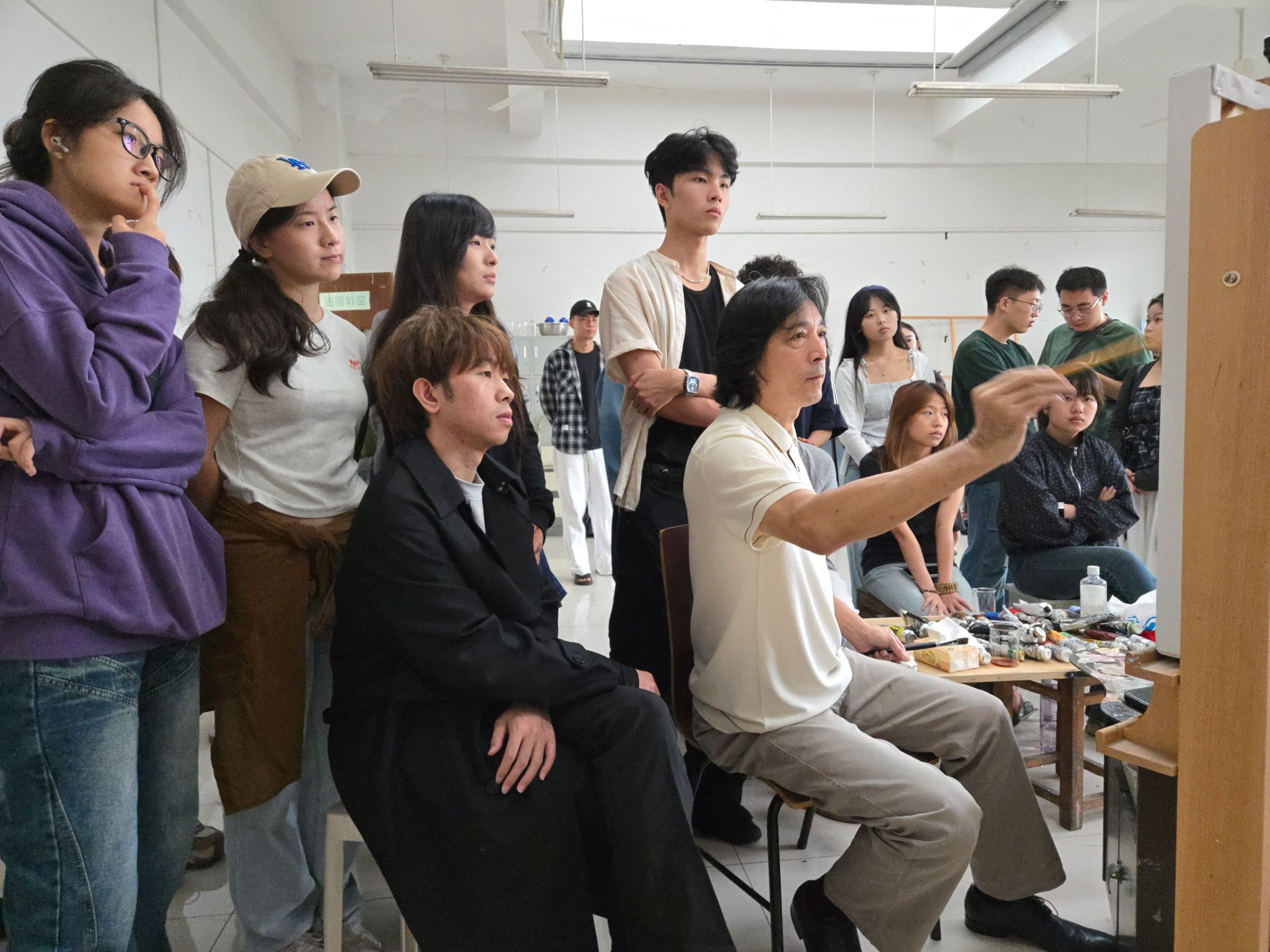 马刚教授与师生们围绕油画人物写生中的困惑展开深入探讨,并结合学生们的习作提出针对性改进意见。此外,他还针对美术学系油画课程教学提出了宝贵建议,为进一步完善油画写生课程教学体系提供了重要参考。