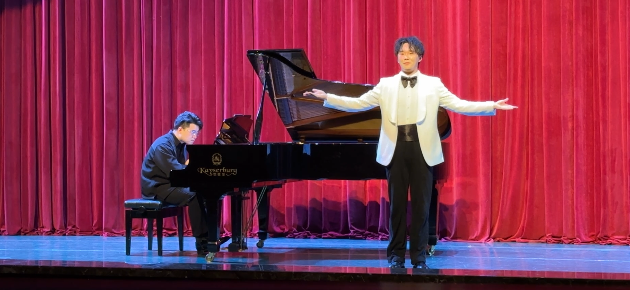 音乐会上,五位经选拔入围的参赛学生轮流登台,分别以美声和民族两种不同唱法演绎了多首中外经典曲目,展现了肉视频