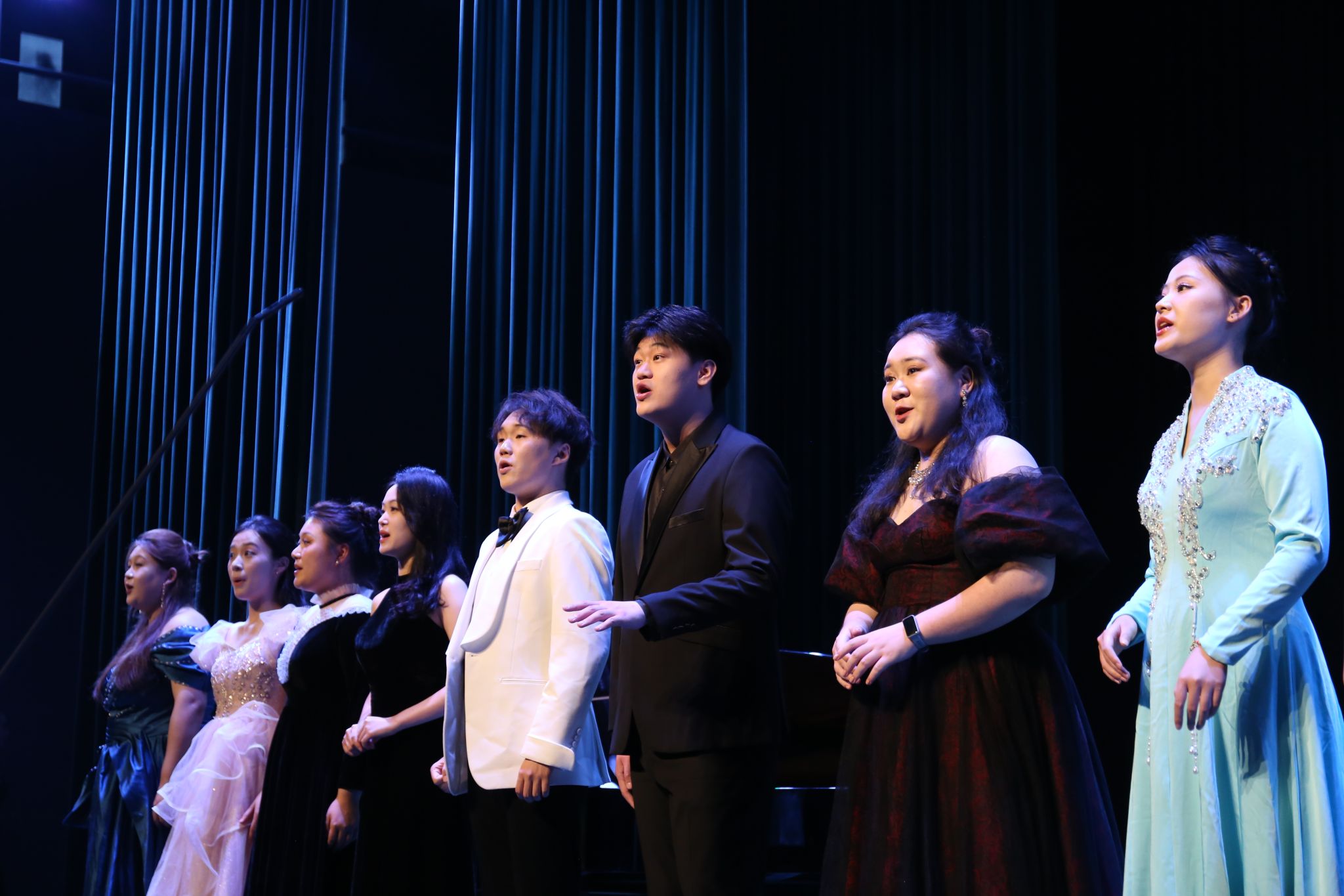 音乐系的师生们献上了一场高水准的演出。喻思言、苏勤和黄慧三位教师分别阐述了高雅艺术进校园的美育意义、教育意义和社会意义。师生们从细腻婉转的艺术歌曲,到经典歌剧选段,再到富有民族特色的民歌演唱,展现了肉视频