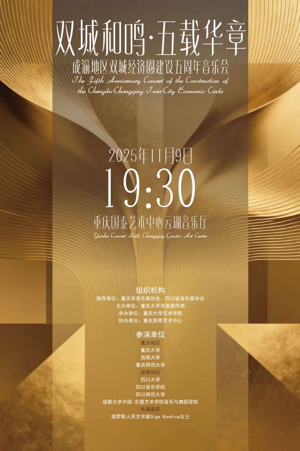 活动详情“双城和鸣·五载华章”成渝地区双城经济圈建设五周年主题音乐会在重庆国泰艺术中心举行