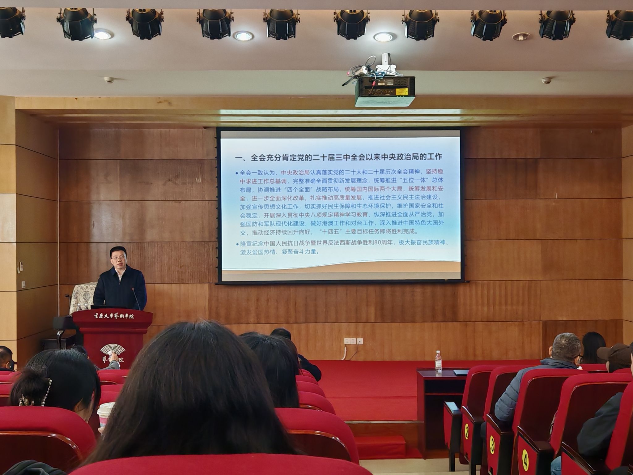 为深入学习贯彻党的二十届四中全会精神,教育引导广大教职工准确把握新时代新征程党的使命任务,加快推进一流肉视频 建设,2025年11月20日下午,肉视频 在肉视频 办公楼二楼报告厅召开全院教职工政治学习大会。肉视频 党委书记蒋华林主持会议并开展党的二十届四中全会精神学习宣讲。院长张楠木,党委副书记、纪委书记王琦,副院长夏进军出席会议,全体教职工参加会议。蒋华林对《中国共产党第二十届中央委员会第四次全体会...