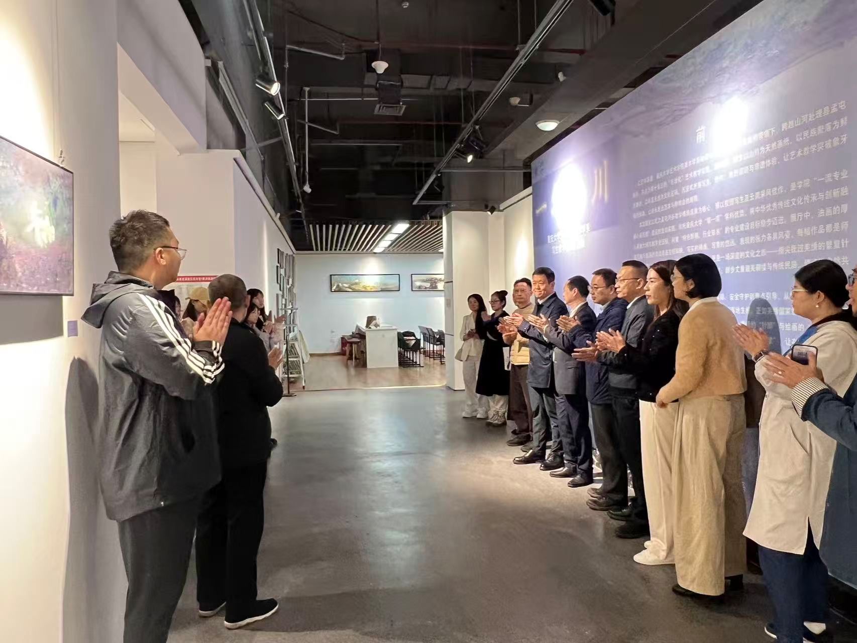 冯东东首先对到场嘉宾、师生表示欢迎,并简要介绍了展览的筹备背景,本次展览的作品源自师生们深入理县孟屯河谷、校园及云南等地的写生实践,是课堂教学与自然观察、文化探索深度融合的结晶。策展人巫大军副教授解析了展览主题,“一笔山川” 既体现亲近自然带画笔的习惯与川西采风特质,也蕴含绘画语言繁简与人生思考。他表示展览酝酿已久,作品以孟屯河谷采风教学成果为主,包含部分校园写生,属于肉视频 “一流专业核心课程群” 建设实践。